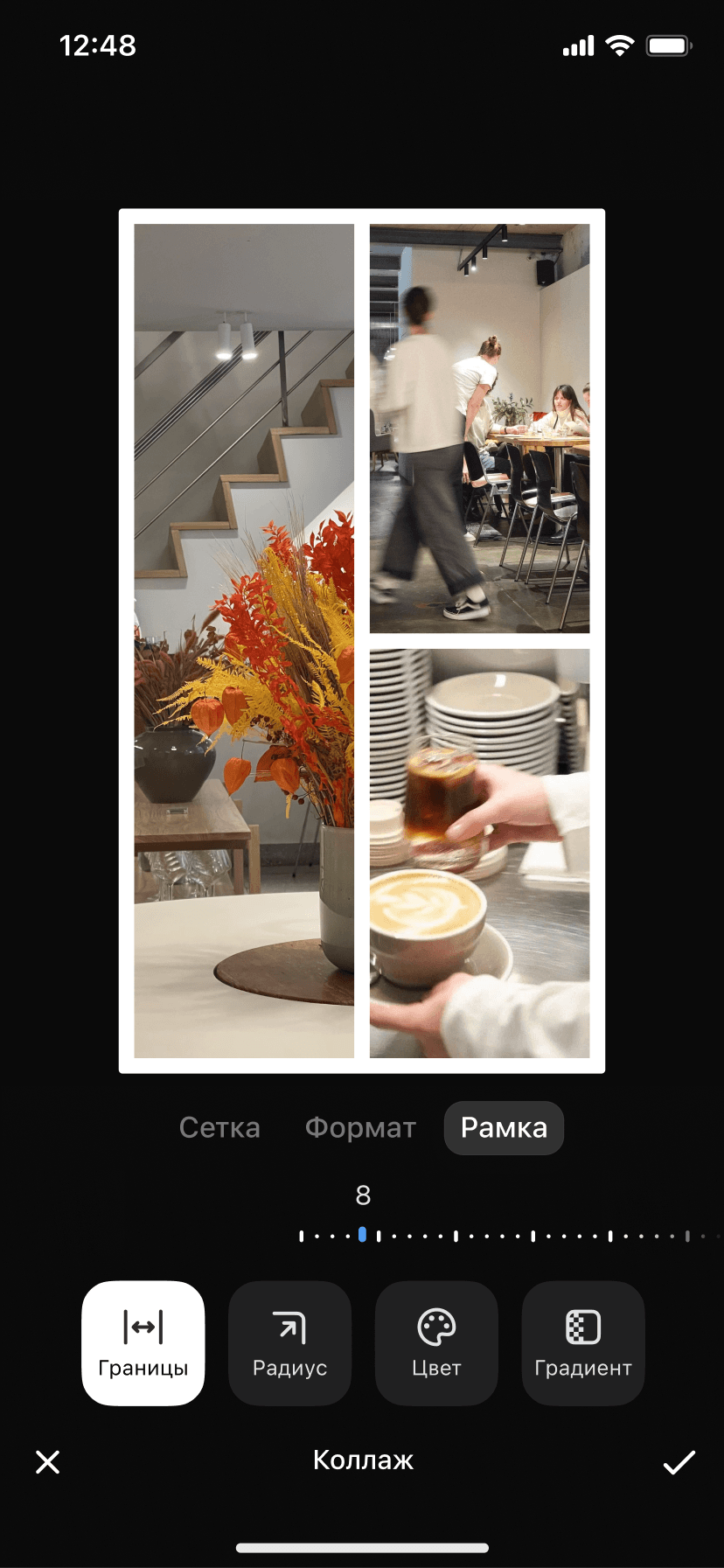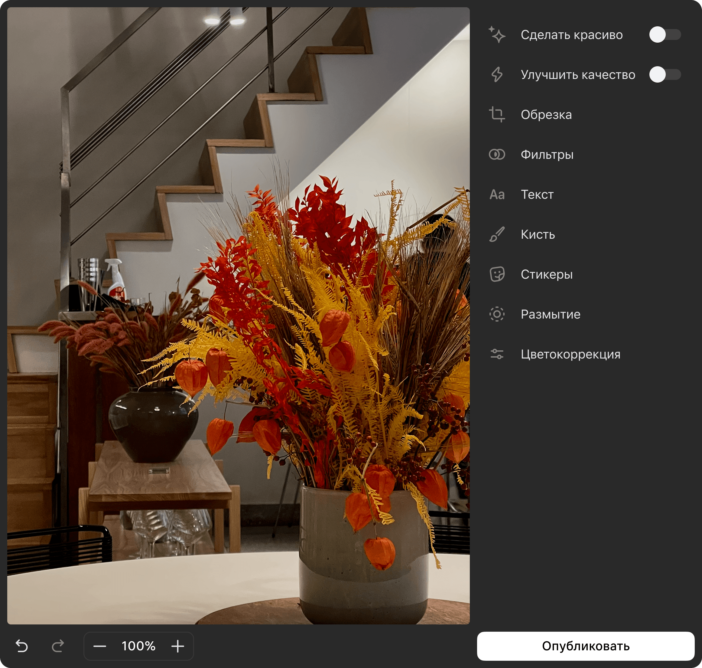 Также были подготовлены дизайн-макеты фоторедактора для Web, которые легли в основу нового редактора историй и задали единый визуальный и UX-подход для дальнейшего развития инструментов редактирования