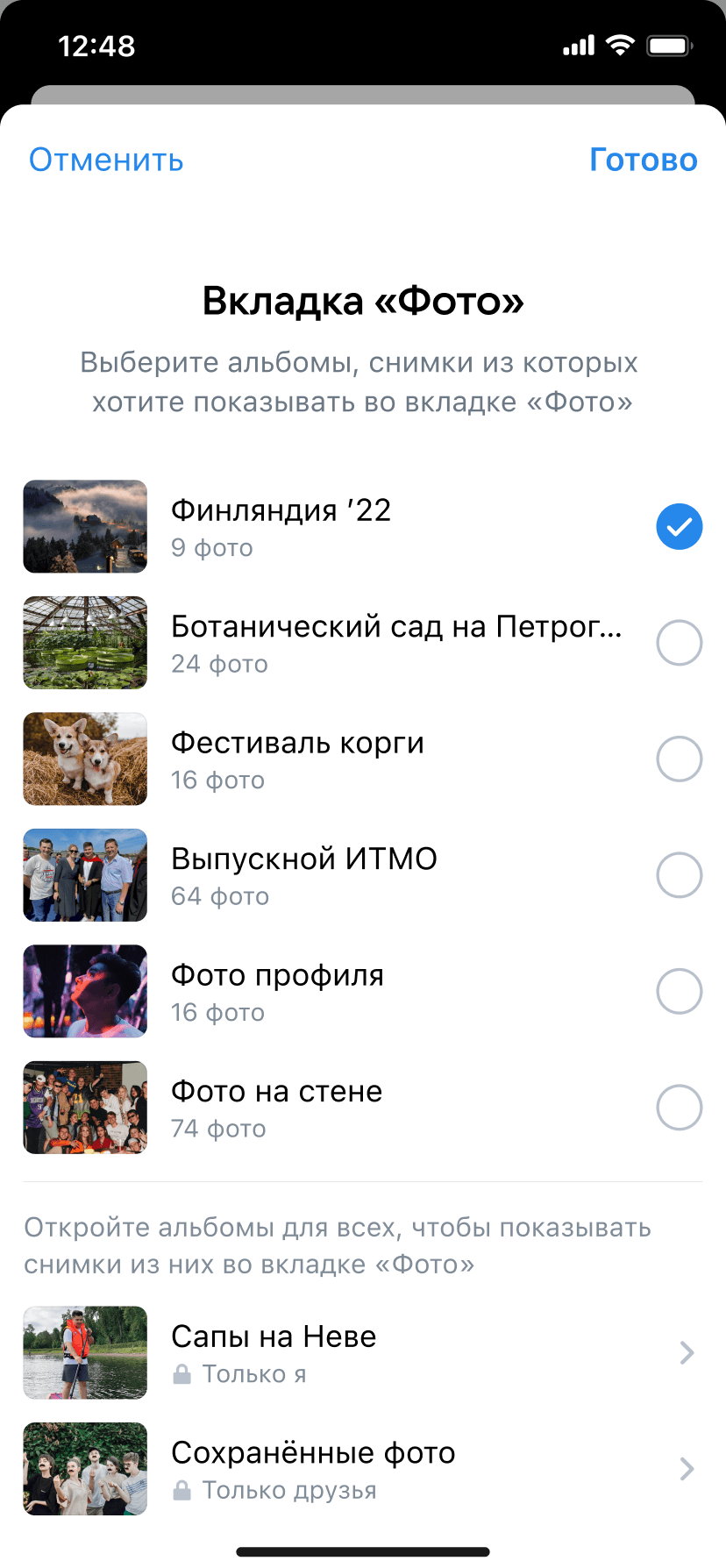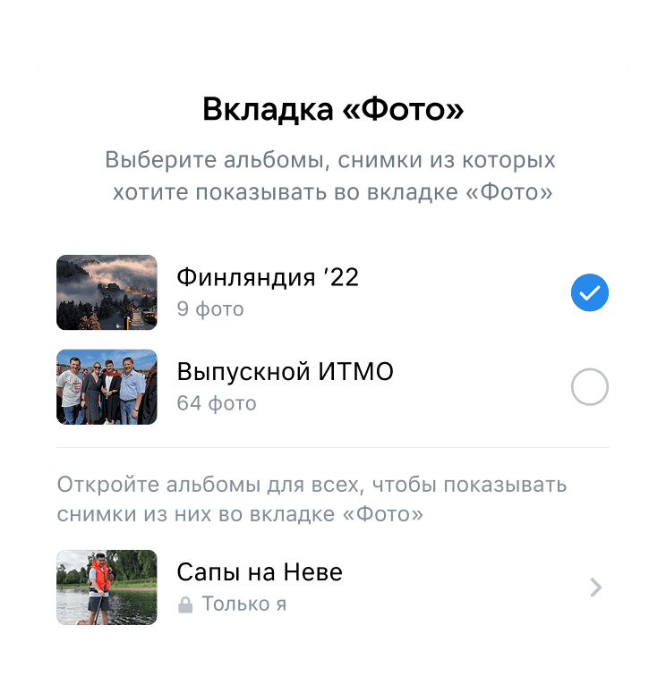 Настройка отображения фото из альбомов
